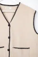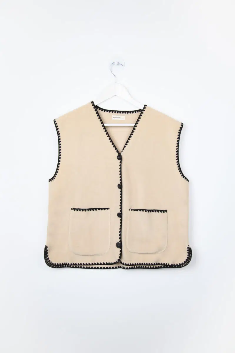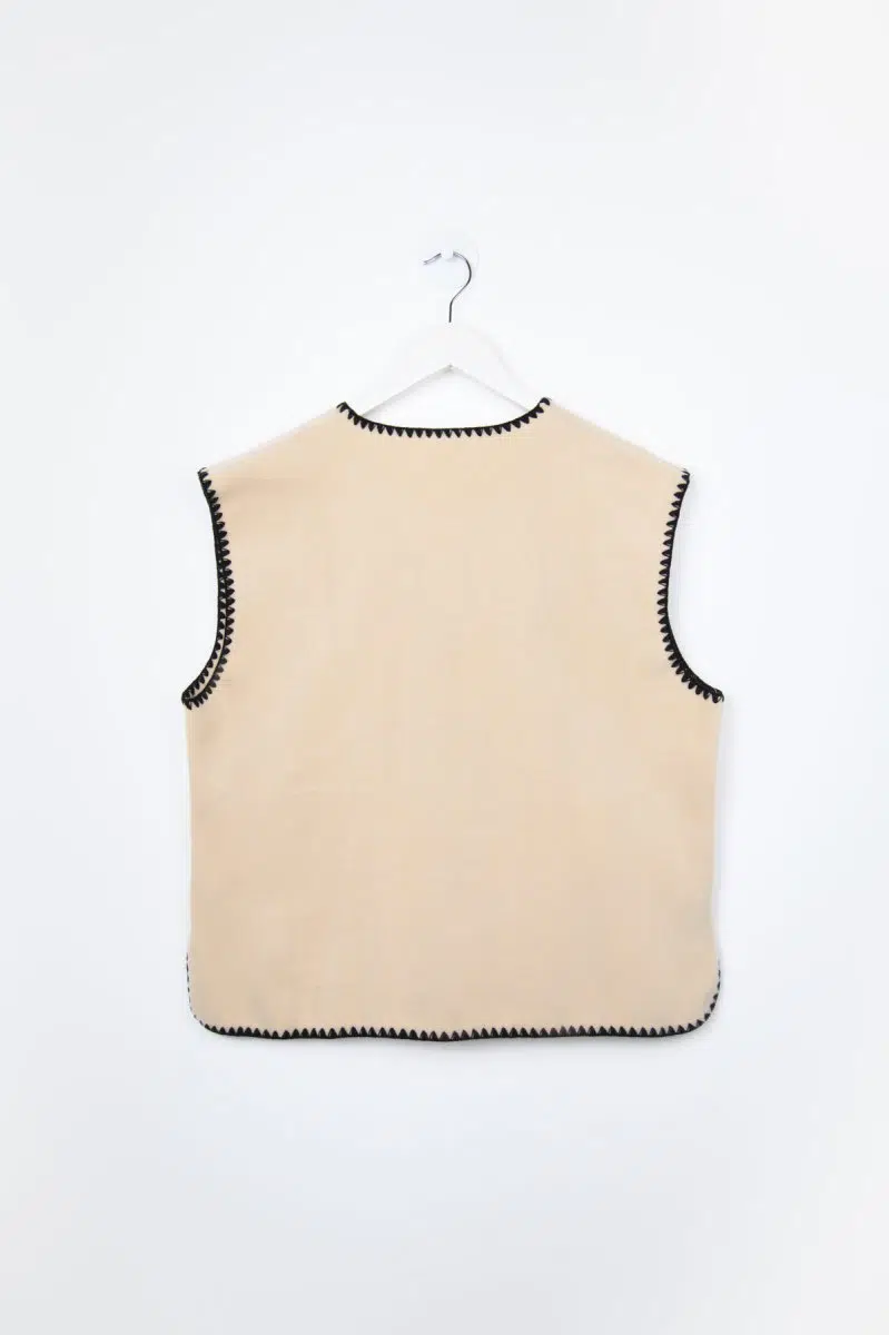 24 Colours Weste Off-White mit schwarzen bestickten Rändern –