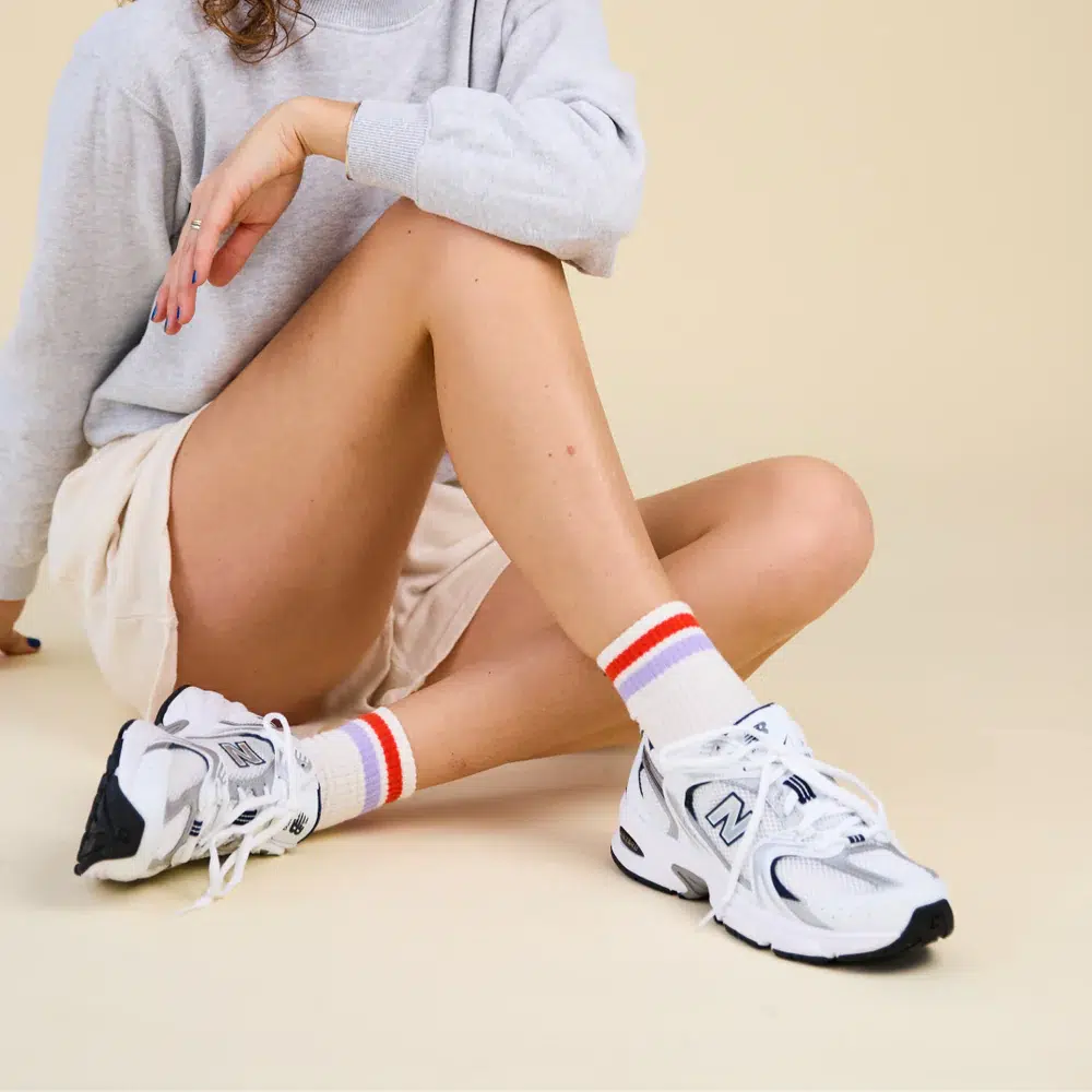 Kurz, knallig und immer für einen guten Auftritt bereit! Unsere The Tennis Ankle Socken sind perfekt mit deinen Sneakern kombinierbar. Wie gewohnt in geripptem Off-White, ultra-bequem und mit knalliger Farbkombo Lila & Rot ❤️💜